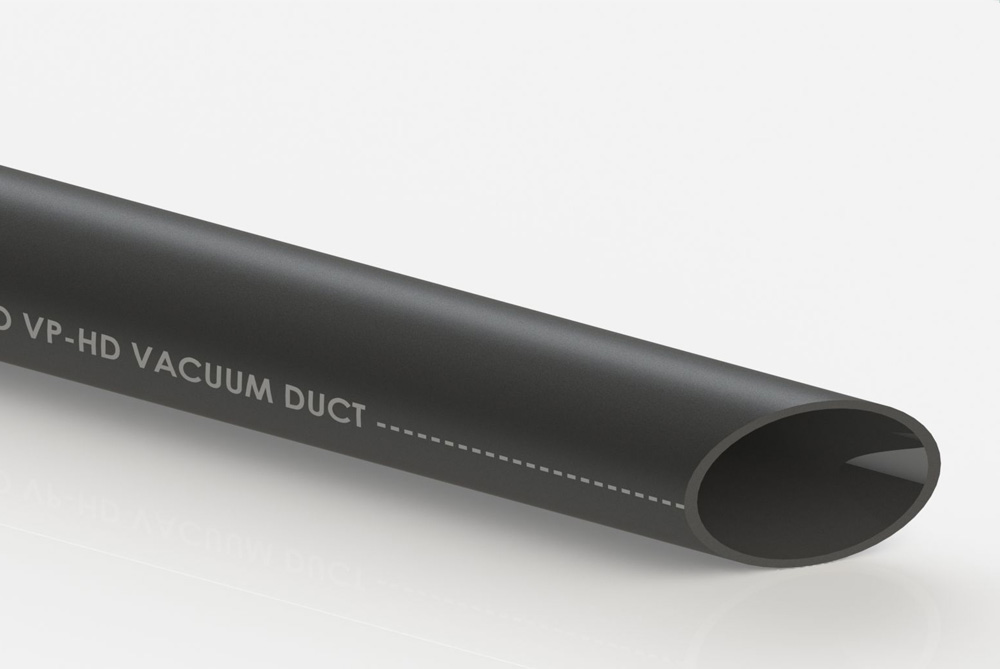 Rura VP-HD (Heavy Duty) charakteryzuje się dużą gładkością, co skutkuje niskimi oporami przepływu powietrza i zwiększoną odpornością na przywieranie zanieczyszczeń. Zastosowany dodatek antystatyczny dodatkowo wpływa na zmniejszenie efektu przyciągania cząsteczek kurzu do ścianek wewnętrznych. Rura posiada średnią odporność mechaniczną oraz udarnościową. Na całej długości rury nadrukowana jest linia znacznikowa ułatwiająca montaż. Materiał PCV zastosowany do wyprodukowania rury nie zawiera związków ołowiu. Dzięki grubszej ściance i zastosowaniu wzmocnionego materiału, charakteryzuje się wysoką odpornością mechaniczną oraz udarnościową. Rura jest odporniejsza na uszkodzenia w trakcie procesu prowadzenia prac budowlanych oraz posiada większą odporność na przetarcia i dłuższą żywotność. Zastosowany materiał posiada również zwiększoną odporność na promieniowanie UV.